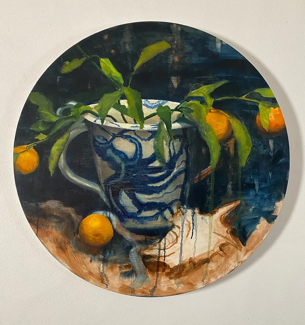 Kraken vase, 2023, oil on board. 60cm round.